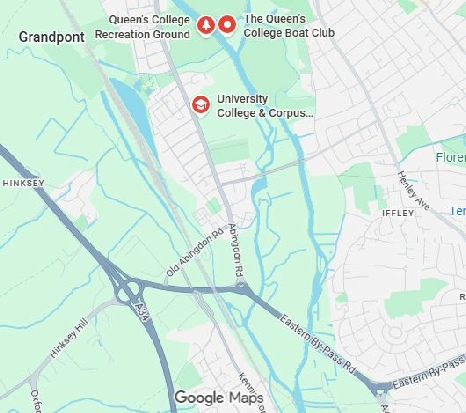 The entrance to Queens College Sports Ground (through a gate almost opposite to Hinksey Park and adjacent to the tennis courts) is often locked, and the alternative entrance is via Brasenose College about 100 yards further down.